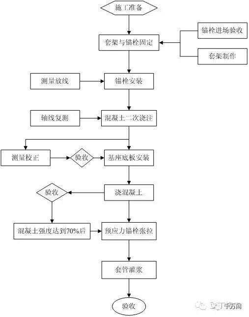 2、預應力錨栓、基座底板施工工藝框圖