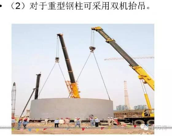常用方法:半榀鋼架就地平拼,單機安裝或雙機臺吊安裝,同時(shí)合攏;半榀鋼架在基礎上力拼,單機扳起,同時(shí)合攏;兩個(gè)半榀鋼架在基礎上組裝,雙機或多機整榀扳起等。
