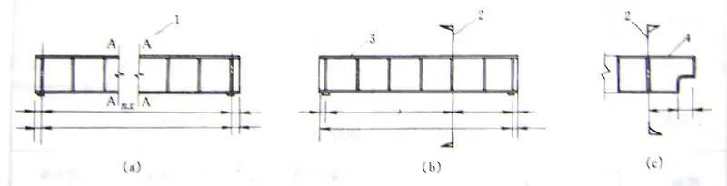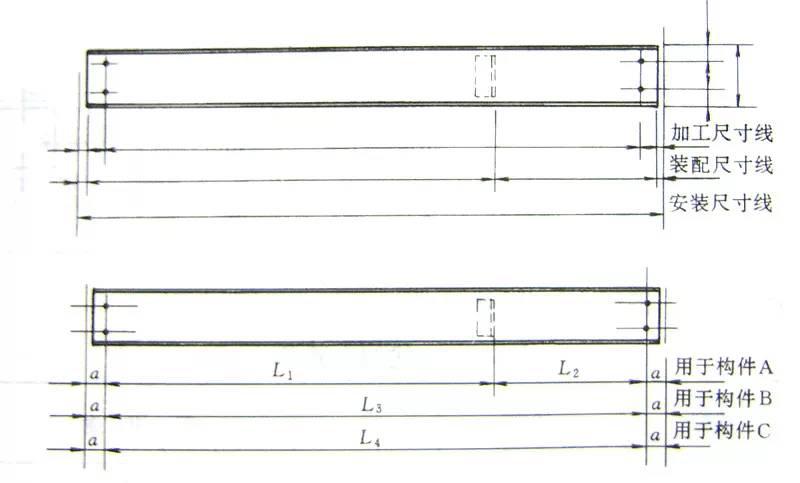 詳圖的尺寸由尺寸線(xiàn)、尺寸界線(xiàn)、尺寸起止點(diǎn)組成;尺寸單位除標高以m為單位外,其余尺寸均以mm為單位,且尺寸標注時(shí)不再書(shū)寫(xiě)單位。一個(gè)構件的尺寸線(xiàn)一般為三道,由內向外依次為:加工尺寸線(xiàn)、裝配尺寸線(xiàn)、安裝尺寸線(xiàn)。當構件圖形相同,僅零件布置或構件長(cháng)度不同時(shí),可以一個(gè)構件圖形及多道尺寸線(xiàn)表示A、B、C!……等多個(gè)構件,但最多不超過(guò)5個(gè)。