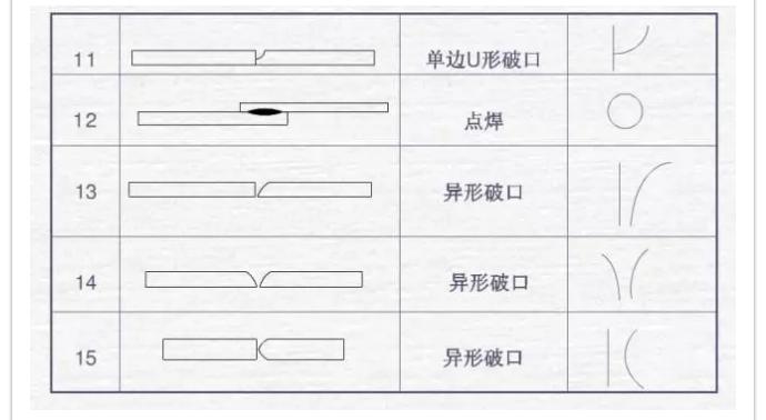 3、若焊縫處在接頭的箭頭側,則基本符號標注在基準線(xiàn)的實(shí)線(xiàn)側;若焊縫處在接頭的非箭頭側,則基本符號標注在基準線(xiàn)的虛線(xiàn)側。