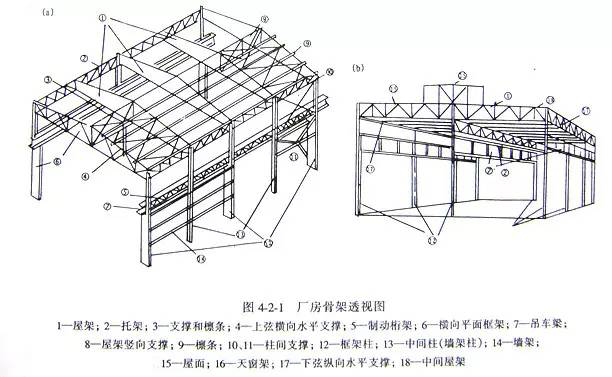(3)屋蓋系統——由檁條、天窗架、屋架、托架及屋蓋支撐等構成。
