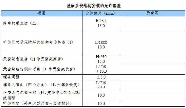 屋面系統結構安裝的允許偏差應符合下表規定。