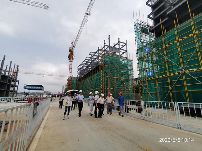 考察團主要參觀(guān)了主體結構已經(jīng)施工的21#-22#樓,提出了鋼結構主體的安裝進(jìn)度、鋼筋桁架樓承板與普通現澆板性?xún)r(jià)比、主體垂直度、柱芯灌注混凝土、防腐防火等問(wèn)題,我司方總針對這些問(wèn)題分別做了詳細講解。