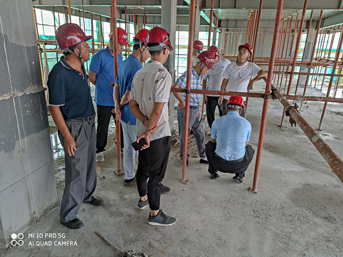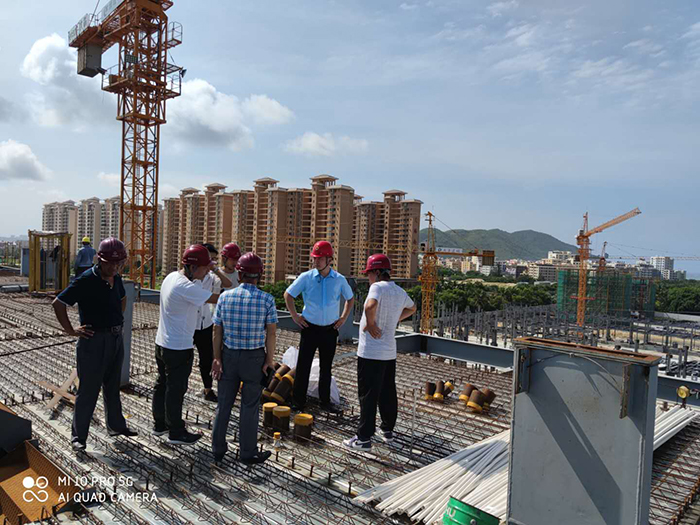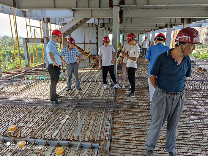 參觀(guān)樓承板綁扎鋼筋作業(yè)