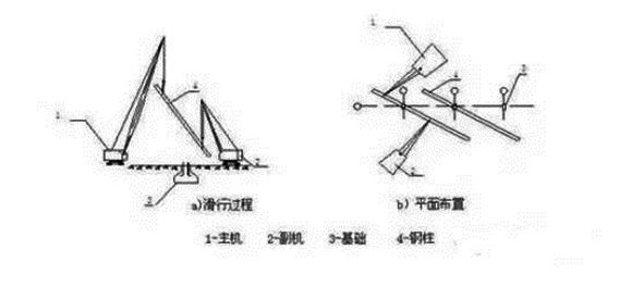 鋼柱材料卸貨時(shí),根據鋼柱構件編號按照施工圖紙一一就位。構件就位后采用單機旋轉法吊裝,為提高吊裝效率,在堆放柱時(shí),盡量使柱的綁扎點(diǎn)、柱腳中心與基礎中心三點(diǎn)共圓弧。