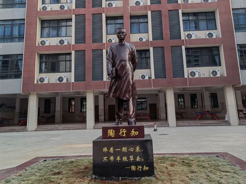 陸校長(cháng)向嘉賓們一一介紹了雕塑的由來(lái)。"捧著(zhù)一顆心來(lái),不帶半根草去",是平民教育的踐行者陶行知先生的教育理念!叭恕(ài)·創(chuàng )新”是北師大精神和文化的高度概括,蘊含了北師海附辦學(xué)5年所凝結形成的精神內核,是全體北師海附人追求真理、矢志創(chuàng )新的真實(shí)寫(xiě)照。他強調,全校教師要堅定“五育并舉,立德樹(shù)人”的育人目標,以陶行知先生為榜樣,以校風(fēng)校訓為崇高指引,不斷為民族育英才。