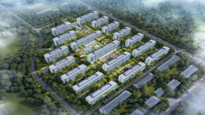 綠城藍灣小鎮——海韻曉風(fēng)項目位于海南省陵水縣新村鎮,總用地面積53546.97㎡,總建筑面積111920㎡,具體為18棟7層~8層中高層住宅(1#-18#)及1棟1層公共配套會(huì )所組成,主要采用我司專(zhuān)利技術(shù)—隱式框架結構體系,滿(mǎn)足國家裝配式建筑認定標準。